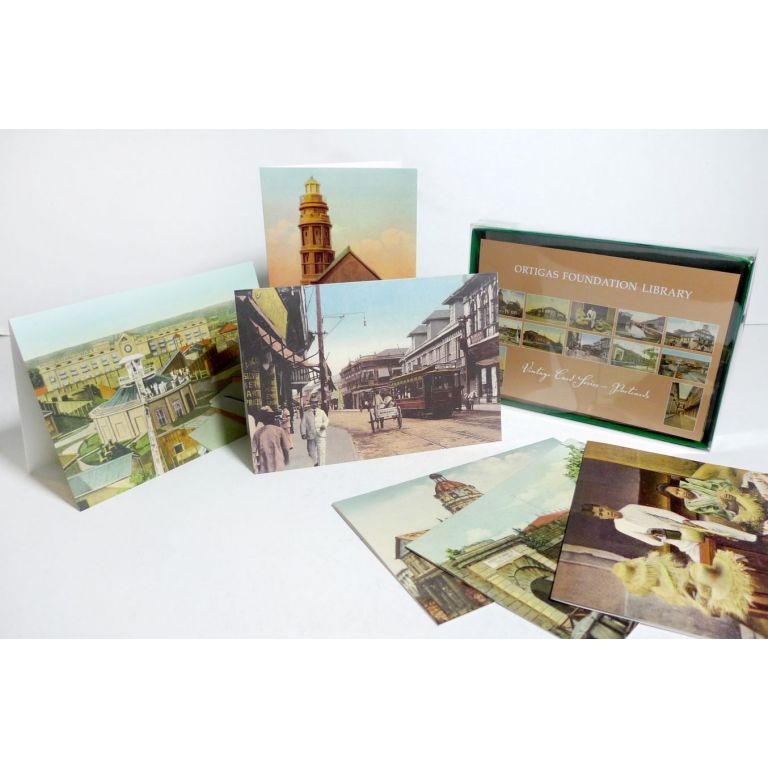 These postcards, printed in Manila, the United States, Britain, and Germany made their way not only to the U.S. but also to other countries in Asia and Europe and introduced the Philippines to the world. Some were even mailed from other countries. The images in these note cards are reproductions from the vintage postcard collection found in the Ortigas Foundation Library.